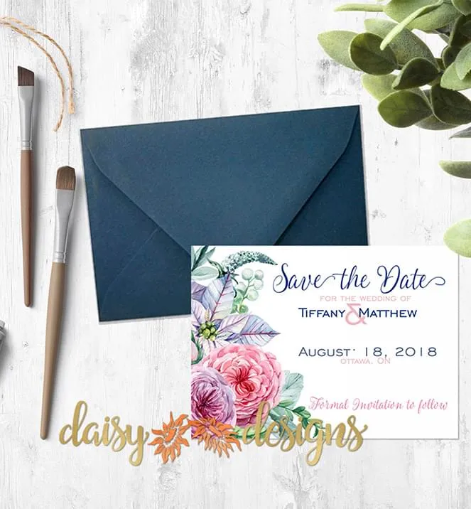 These Peonie Blooms Save-The-Date cards from Daisy Designs can be made to match any of our designs. A minimum order of 20 is required.