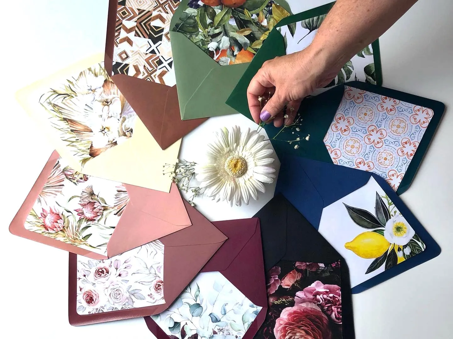 invite with envelope and liner assortment of envelope liners inside the envelopes