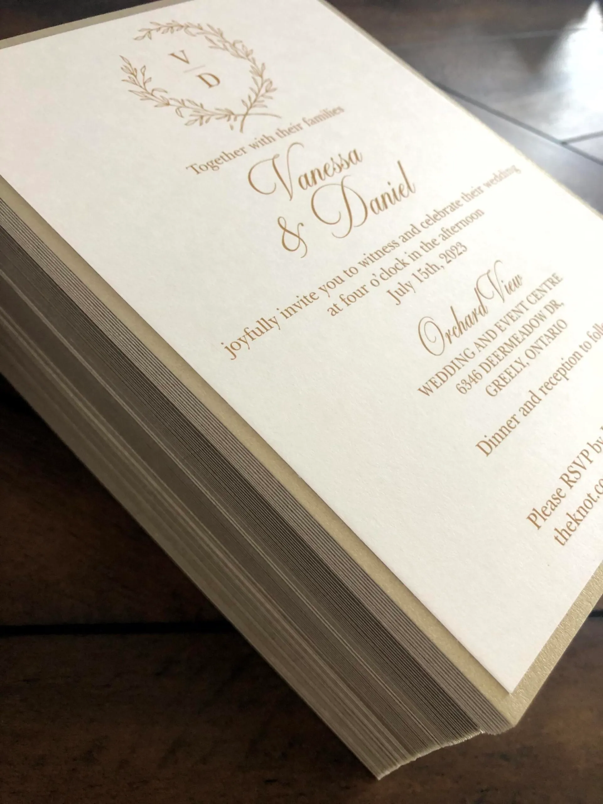 Make your big day unforgettable with custom die-cut shapes! These beautifully crafted designs are tailored to reflect your unique style and theme. Our custom die-cuts add a personal and luxurious touch that will leave a lasting impression on your guests.